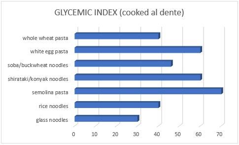2. Cooking pasta al dente (slightly hard and elastic, cooked about 5-6 minutes) helps keep the glycemic index at a lower level.  Al dente pasta will have, for example, IG 60, while cooked longer will already have IG 75.