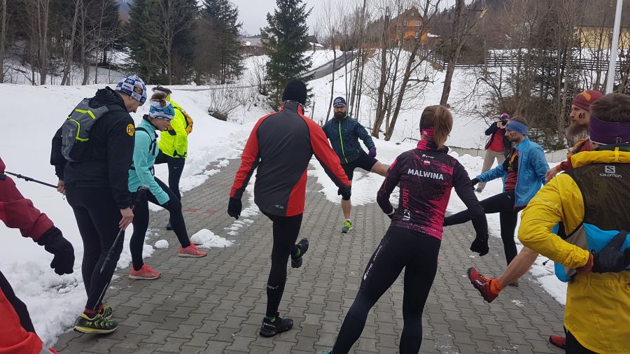 WARUNKI – Tym razem start nie był, jak poprzednio, w Centrum Górskim Korona Ziemi, a na parkingu przy Dyrekcji Parku. Warunki całkowicie bojowe, ale na szczęście pogoda dopisała! Rankiem jeszcze zapowiadał się deszcz, ale na szczęście słońce wygrało. Za to po raz pierwszy była prawdziwa zima. Nie trzeba było się wspinać na wysokość 800 m n.p.m. żeby znaleźć śnieg – ten był wszędzie. Jeśli ktoś się nie przykładał do ćwiczenia stabilizacji, to miał problem ;)