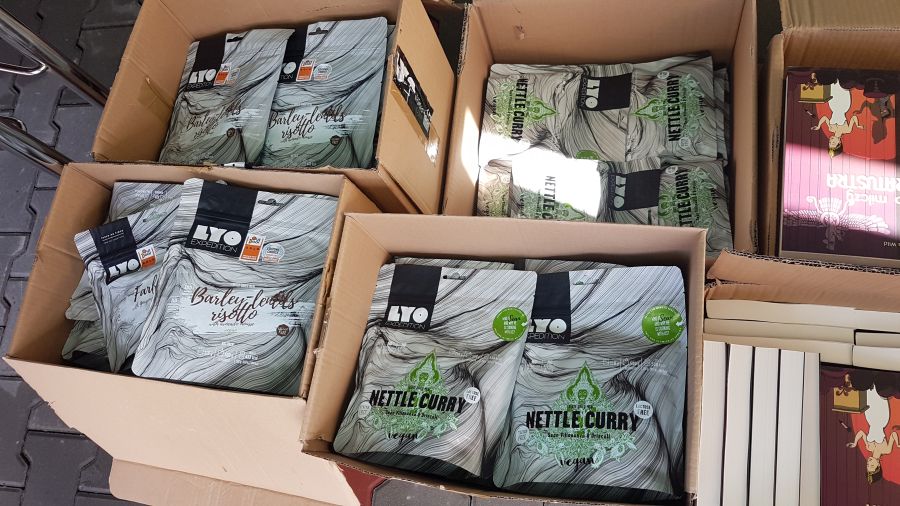 Garmin pokazał mi czas 02:34:58 i dystans 20,3 km. Czas zadowalający, człowiek przyjemnie zmęczony. Odebrałem medal i podszedłem do Asi, która stała przy namiocie z kawą i posiłkami. W namiocie czekały rarytasy! Farfalle ze szpinakiem i serem, pokrzywowe curry z ryżem, risotto z pęczaku z soczewicą i musem z awokado... no, no! To wszystko zaserwowane przez Lyofood, jednego z partnerów biegu, oczywiście w formie liofilizowanej. Wystarczyło zalać wrzątkiem, zamknąć w opakowaniu na kilka minut i zatopić łyżkę w porządnym daniu! Jak na posiłek regeneracyjny „pod chmurką” – klasa!