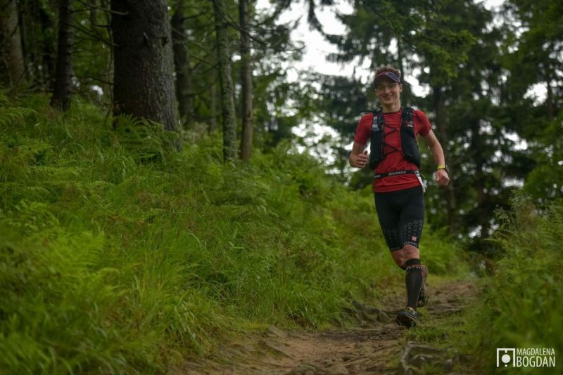 - Tempo – Było bardzo dobrze. Z początku przeszarżowałem, ale po pierwszym podbiegu wyhamowałem i złapałem swój rytm, co pozwoliło mi zejść do komfortowej strefy tętna. Dalej już trzymałem swoje tempo i od 9-10. km zacząłem wyprzedzać. Na najdłuższym podbiegu miałem siły żeby sporą część tego odcinka podbiegać. Tu umocniłem swoją pozycję, a na samej Przehybie jeszcze wyprzedziłem. Na zbiegu cisnąłem już coraz mocniej, zwalniając tylko na najwęższych i najbardziej niebezpiecznych odcinkach (ogromna ilość wystających korzeni).