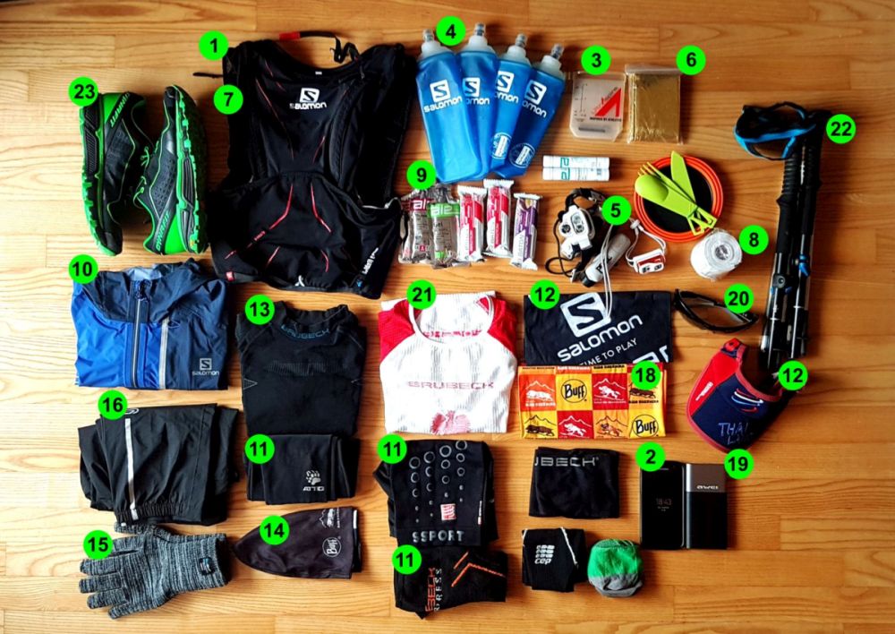 Osiem miesięcy zleciało jak tydzień. Stoję nad stertą szpargałów, które przez ostatnie tygodnie kilkanaście razy przebierałem, to dokładając zapomniane elementy, o które wołał regulamin biegu, to odrzucając te niepraktyczne lub zbędne. Kombinowałem jak mogłem żeby uzbierać z tego co mam jak najlepszy zestaw, który przetrwa ultraszybką podróż przez 3 kraje, dookoła masywu Mont Blanc!