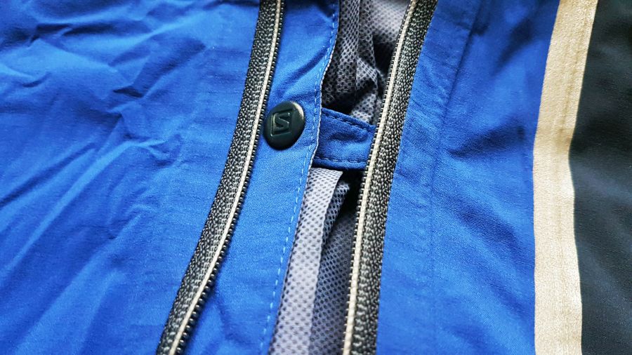 Krótki pasek, trzymający poły kurtki z początku traktowałem z przymrużeniem oka, ale to naprawdę super wynalazek. Taka pierdoła, a ogromnie wpływa na komfort biegu. Materiał kurtki jest bardzo elastyczny, zwłaszcza na plecach, dzięki czemu w pełni zapakowany plecak (cały sprzęt obowiązkowy na CCC) mieści się ładnie pod kurtką. W porównaniu do Inov-8 Ultrashell, który jest super lekki, ale sprawia wrażenie delikatnej bluzki, Salomon to już rzeczywiście kurtka. Jedyny zarzut, który mogę mieć do Bonatti, to miękki daszek w kapturze, na który liczyłem w przypadku deszczu, ze względu na to, że noszę i biegam w okularach. Niestety, ten daszek to tylko taki „organ szczątkowy” – jest, ale roli nie spełnia. Dlatego na deszcz zawsze zabieram ze sobą daszek do biegania.